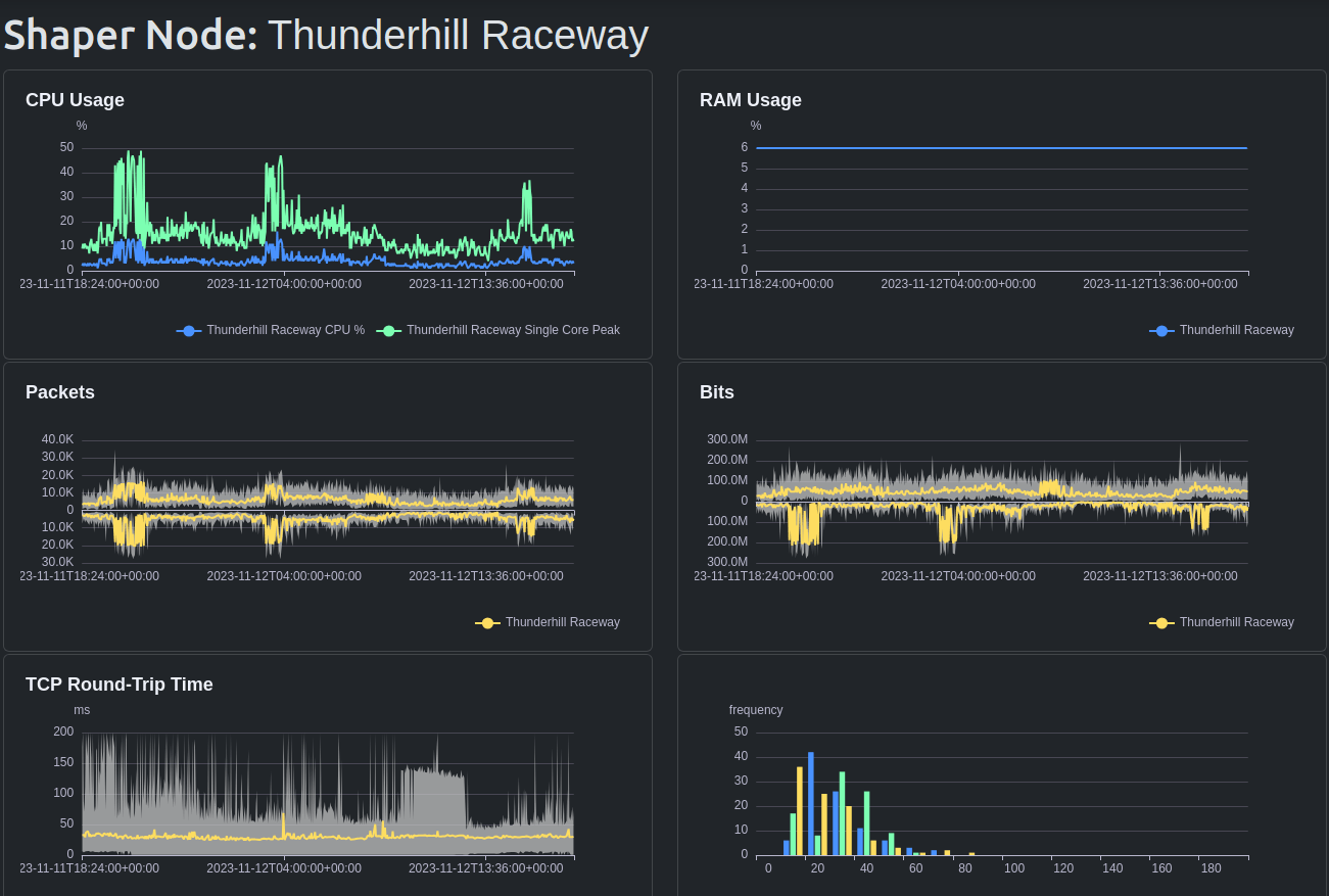 The other screenshot is the LibreQoS LTS (Long Term Stats [Beta]) showing the shaper nodes system stats for 24 hours of the event.