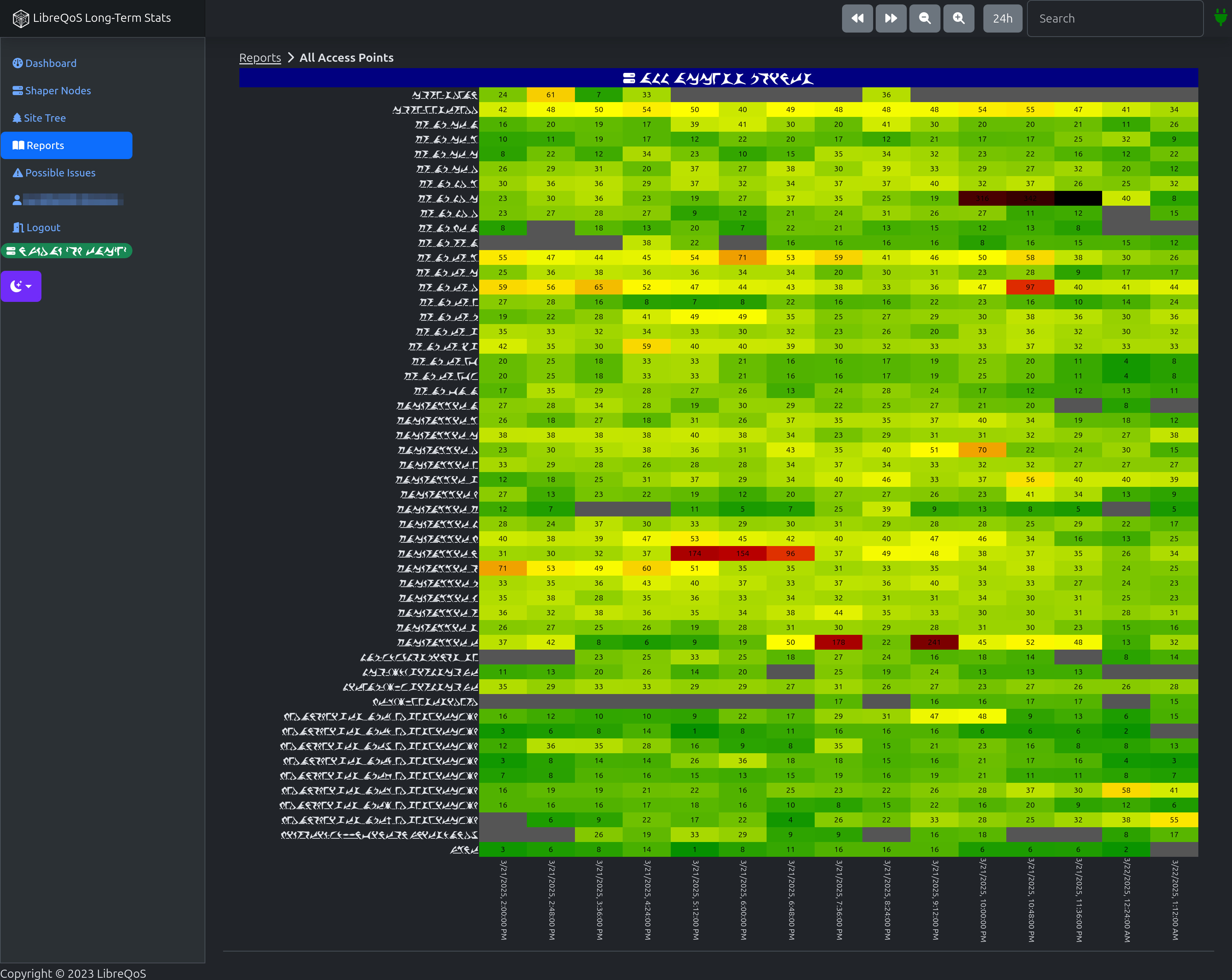 LTS’ Heatmap Reports allow you to instantly spot periods of poor performance on Access Points, OLT ports, or even entire Sites. No need to trawl through dozens of line charts – our intuitive Heatmap Reports allow you to promptly identify and resolve network issues at any level.
